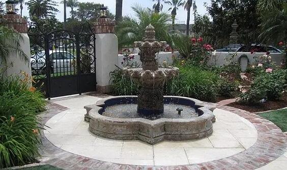 噴泉的大小和高度需要根據(jù)庭院的大小和比例進行設計。如果庭院比較小,噴泉的大小和高度也應該相應減小,否則會顯得過于龐大。噴泉的高度也需要考慮到周圍的環(huán)境,如果周圍有建筑物或樹木,噴泉的高度應該適當降低,以免影響周圍的視線。